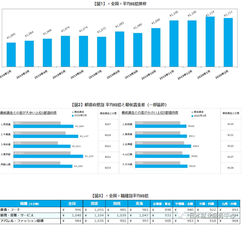 首先是時(shí)薪。日本跟國(guó)內(nèi)不同,工資是按時(shí)薪算的,不是固定一個(gè)月給你幾千,你就一直是那個(gè)工資。時(shí)薪跟地區(qū)有關(guān)、跟會(huì)社有關(guān),跟所做的工種也有關(guān)。下面的圖就是日本各地區(qū)、時(shí)間、工種的平均時(shí)薪,大家可以作為參考。