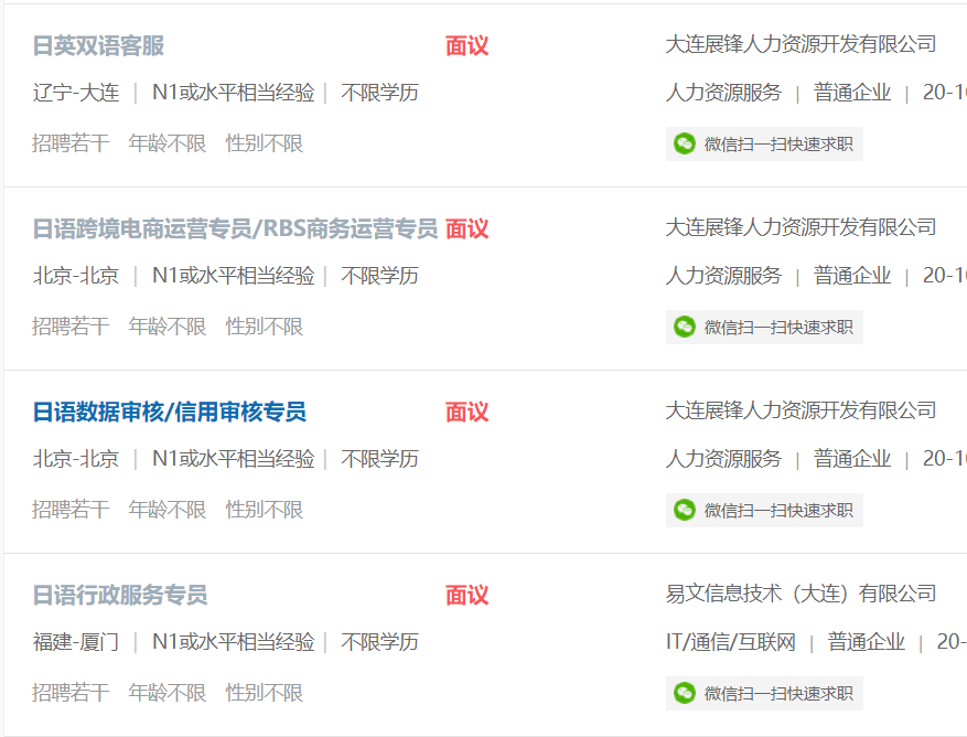 從日語人才網https://www.japanhr.com/job/ 上可以看出,國內的日企招聘日語人才時,大多數的要求是日語N1以上。