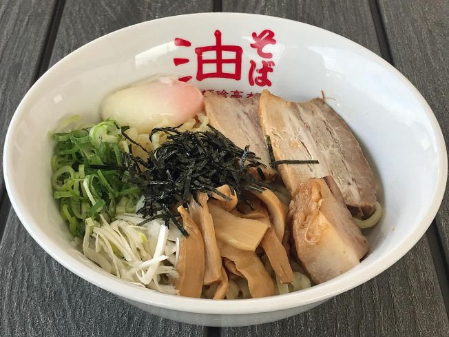 傳統(tǒng)意義上的拉面是由「面、湯、配料」三種要素組成。但是這款稱為「拌面」的拉面沒有湯。在日本被稱為「油面」,油醬料在碗底,將其與面攪拌均勻后食用。