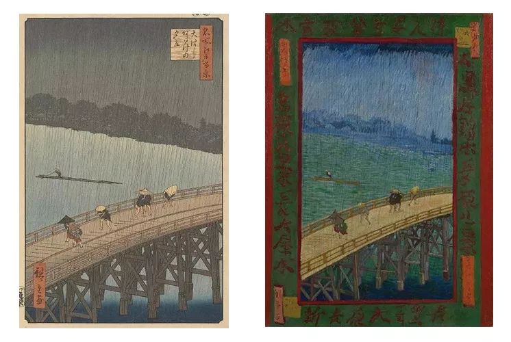 歌川廣重《大橋暴雨》(左)梵高《雨中大橋》(右)