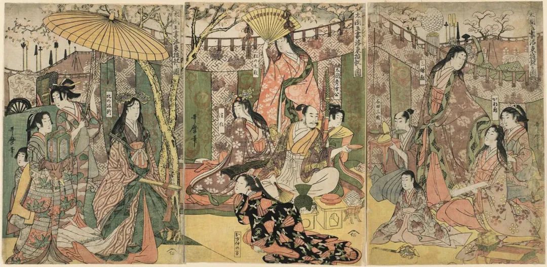 隨后,畫家們開始以商人們那煙花柳巷的奢侈生活為題材,叫做“手筆風俗畫”,為浮世繪的前身。