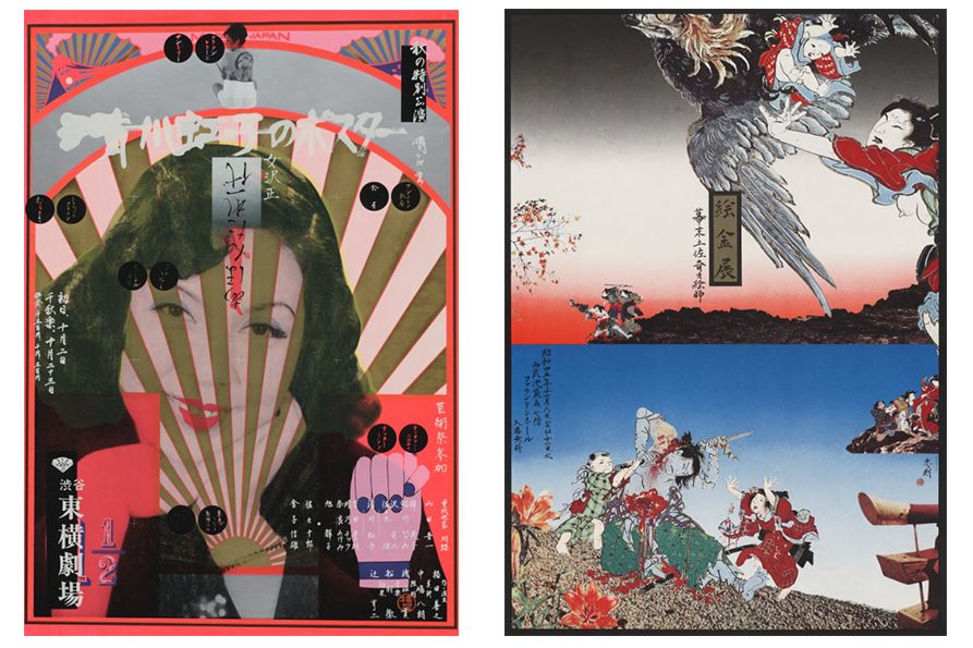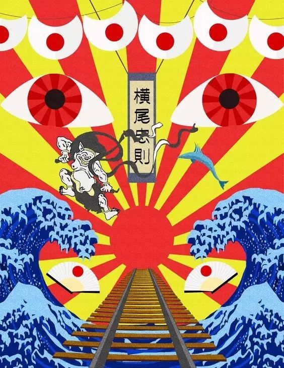 以兩位日本設計大師田中一光和橫尾忠則為例,同樣是參考了浮世繪的色彩、構圖、內容,田中一光拿出了“極簡性冷淡”版本的浮世繪設計,橫尾忠則向當代藝術拿走拼貼的大菜刀,把浮世繪和波普藝術一鍋燉了。
