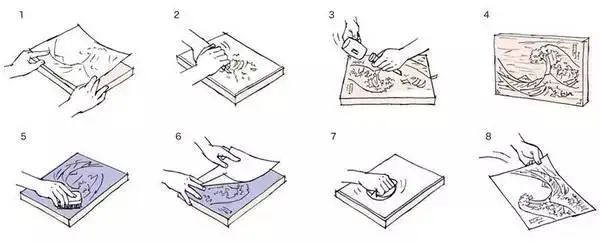隨后,畫家畫圖定色彩,雕師根據畫家的指示雕刻線板和色板,印師根據需求進行印刷。浮世繪便宜大碗的基礎來源于明確的分工。
