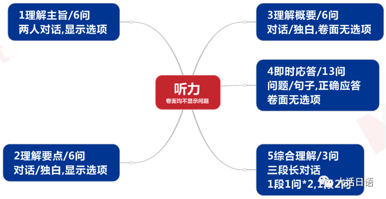 • 聽力為單獨一份卷子,完成時間60分鐘。兩部分中間有10分鐘休息時間。