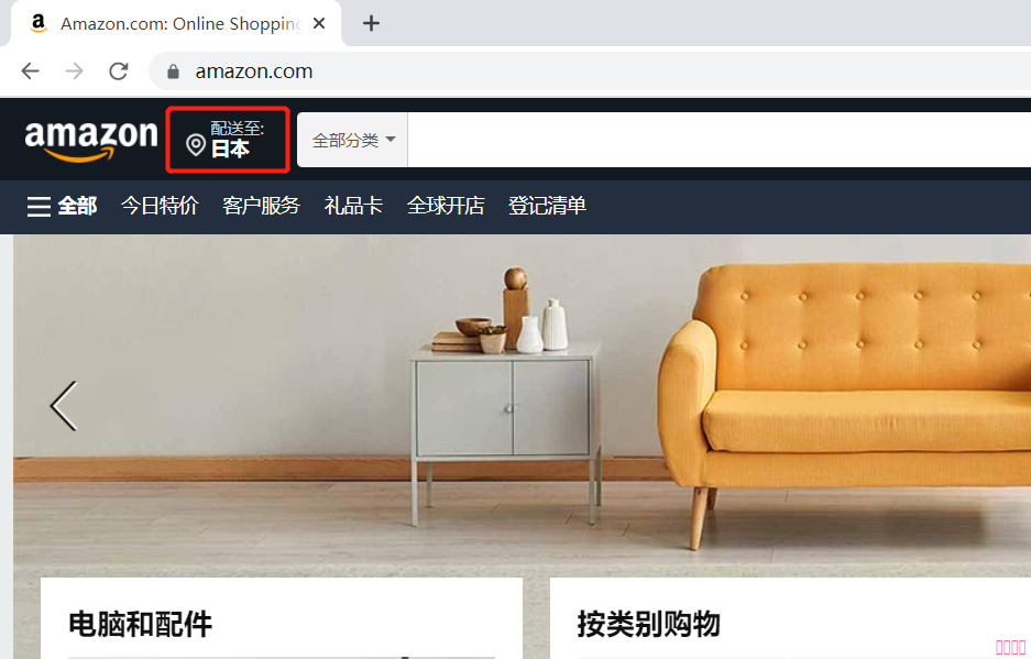 2、您也可以訪問 www.amazon.com,選擇地址:配送至日本